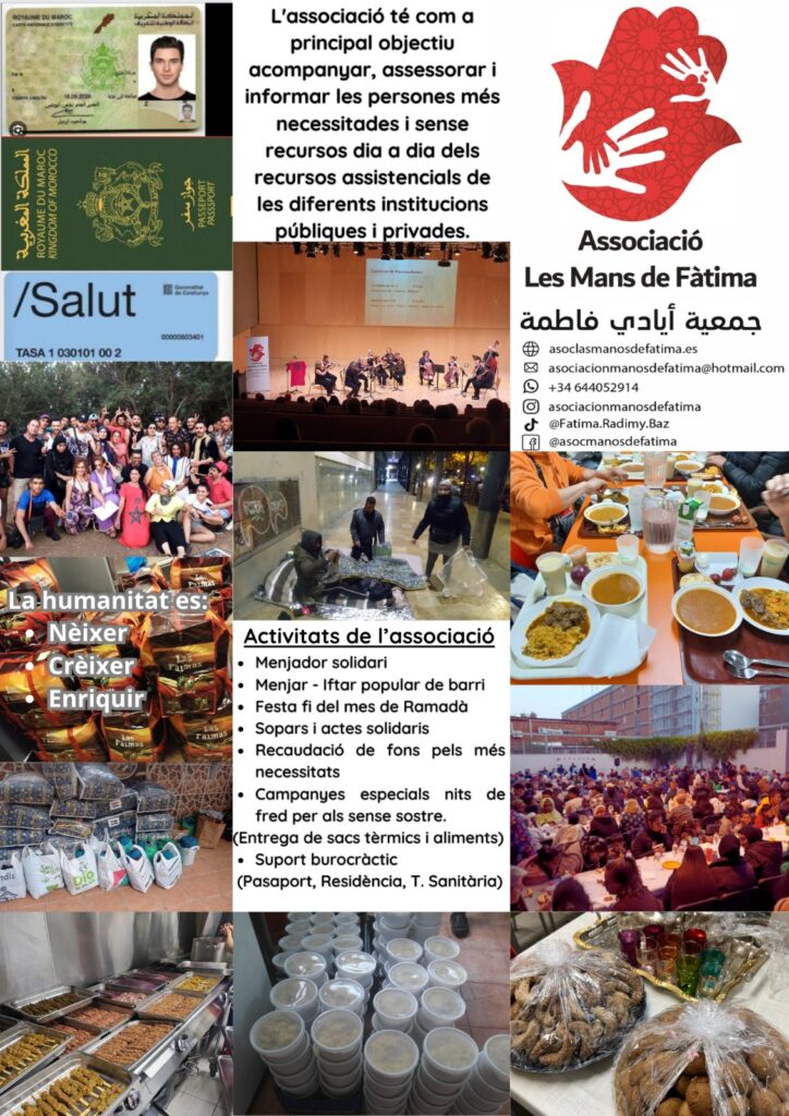 و من بين الجمعيات التي تحظى بسمعة طيبة بين أفراد الجالية المغربية بكطلونيا، لما تبذله من جهد كبير و متواصل في سبيل خدمة المهاجرين، ليس فقط المغاربة، و لكن من مختلف الجنسيات، نجد جمعية أيادي فاطمة، بكل ما يحمله الإسم من رمزية الخير و العطاء و اليُمن، تأسست الجمعية سنة 2022 في العاصمة الكطلانية برشلونة، و التي تعرف استقرار جالية مغربية كبيرة، و ترأسها الفاعلة الجمعوية، فاطمة رادمي بازي، و رغم العمر القصير للجمعية، إلا أن نشاط طاقمها و مساهمته في العمل الجمعوي و الخيري كانت موجودة و حاضرة منذ أكثر من 5 سنوات مضت.